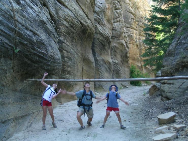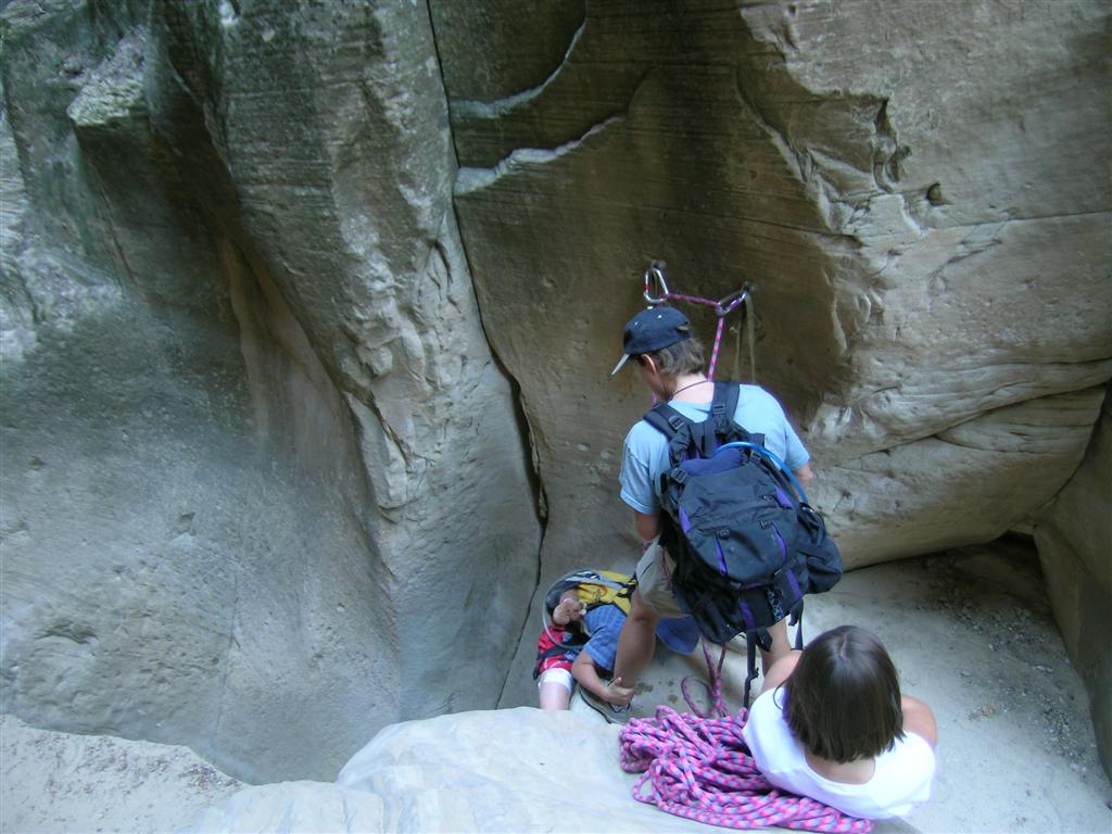 There are two or three small drops (10 to 15 feet) that require a rope. We brought harnesses, gear and a full rope which would be best for kids, but I’ve heard of plenty of people that bring a 50 foot rope and hand-over-hand (not for kids) or just tie into the rope and get lowered. It really isn’t very hard technically, but PLEASE do your own research and find out more on Orderville canyon and whether you feel comfortable doing it with your kids.