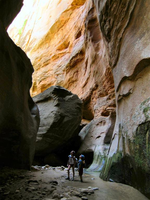 This is a long (10 miles!) but technically easy canyon. I think an active 10 or 12 year old could do this, but it does take ALL day and you need to get an early start. The closest airport with easy access to rental cars is St. George, Utah, about an hour’s drive away. There are numerous shuttles in Springdale that can take you up to the drop off.
