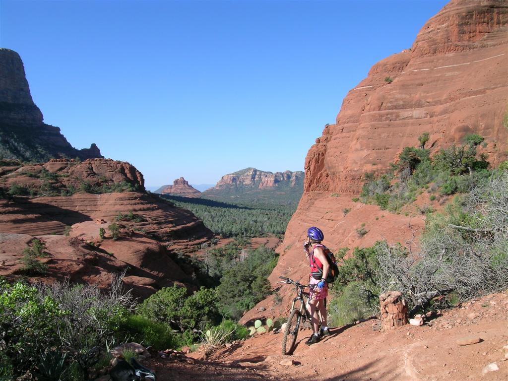 My wife and I went to Sedona for a weekend of mountain biking. We stayed up on the airport plateau at the Sky Ranch Lodge, which can’t be beat for being close to the airport. We rented a car to get around, and used a small bike rack that attaches to the back trunks of cars that I use when renting (cheaper than renting an SUV or van). The riding was great, but the real story of the trip was what happened on the way out.