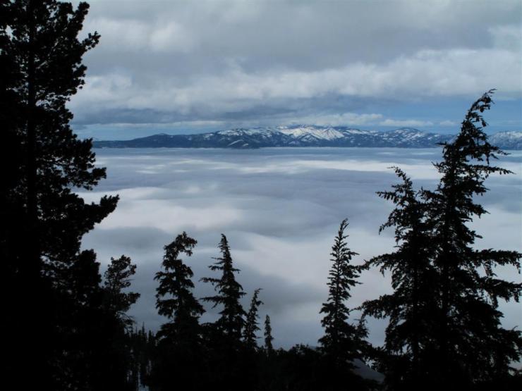The ToothBetsy and BodieTwo skiers and a dogLake Tahoe Winter Inversion