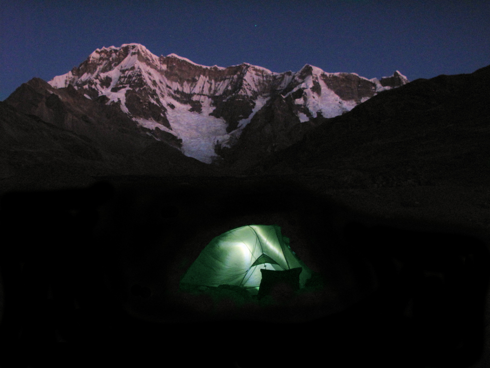 We made sure we spent one night at the village of Tinki at 12,500 feet before we started out. We also hired horses from a local horseman (thanks to Belyn for negotiating that in spanish!) to carry our packs for the first day up to 14,500. After that we were on our own, just the four of us. It was a great trip, with a high point of 17,000 feet,and my son even found a pre-Inca arrow head on the trail.