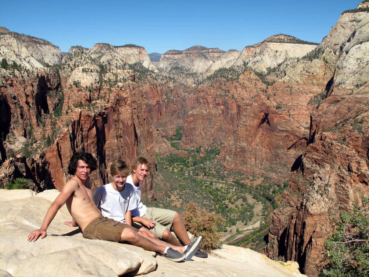 I met a gentlemen at the top of Angels Landing who asked where we were from. California I said. He said that he was from Salt Lake City, only four hours up the road. He was feeling pretty good and it would have been rude to tell him that with the hour drive to St. George and the two hour flight home, we were as close as he was. So I just let it go.
