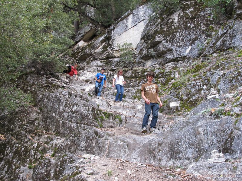 The climbing was great. Betsy and I are more experience with rope handling, protection, etc., but for pure athleticism on the rock these students had us beat and it was fun to watch them. A highlight of the trip was a hike to a semi-secret spot where you can see five major Yosemite waterfalls at once (Nevada, Vernal, Illilouette , Upper and Lower Yosemite Falls).