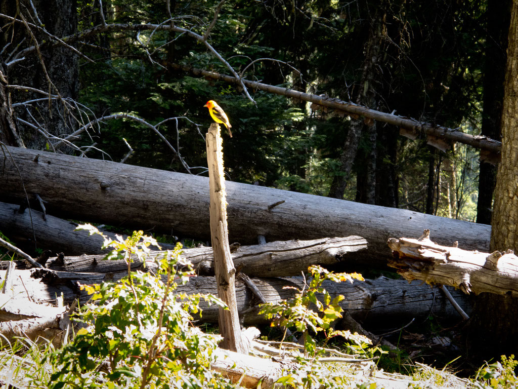 It is a spectacular place to ride, both trail and road. Really, some of the best of both. I did the famous Surveyors Ridge ride on my mountain bike with great views of Mt. Hood most of the way. I stopped to work on my pedal and a colorful little bird came and sat near me. Very nice.