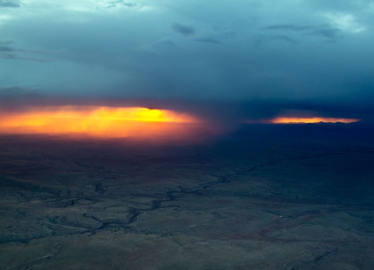 I took off from the Grand Canyon and was treated to a spectacular sunrise showing itself through a line of storm cells. Almost unbelievable. From that point on I flew the crookedest path I’ve ever flown as I weaved around weather. I did get the plane wet in virga but in the end I was comfortable that I flew the route in a safe manner.