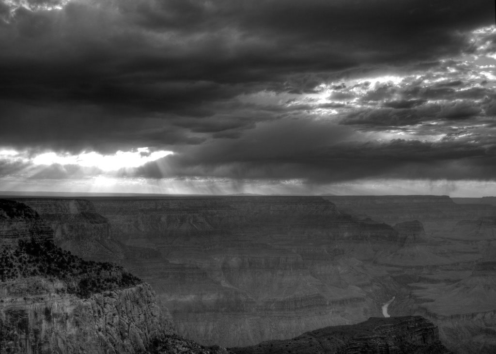 It was a business trip to the Phoenix area and since the first meeting was at 9:00 am I flew out the night before. I decided (well, why not?) to land at the Grand Canyon that night, and head out with my bike and camera to spend some time on the rim of the Grand Canyon. It is actually a fantastic place for a road bike because they have closed the rim road to cars and only allow shuttle buses and bikes. So I was able to bike along, occasionally in the rain, stopping at various viewpoints as the sun got lower and the light changed in the canyon. The weather and rain kept the crowds away and I really had a good time riding and waiting for the light and weather to create a good photo opportunity.