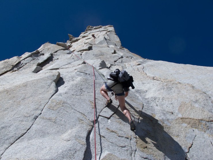 5.10b?  Backcountry 5.10b at 11,000 feet?  I climb 5.10b on a good day on a top rope.  Bets is a better climber than I am (although off topic, I might nevertheless mention that I am a better kayaker than her) and I was quite sure she would do fine on the climb.  But I started to have visions of being at the bottom of the rope, my arms completely spent, looking up.  Peter Croft and my wife would be at the top looking down, saying, “You poor, poor, little man”.    So I slipped in some extra pull ups in my workout and hoped for the best.