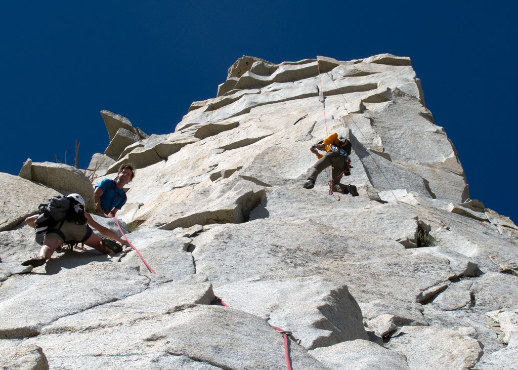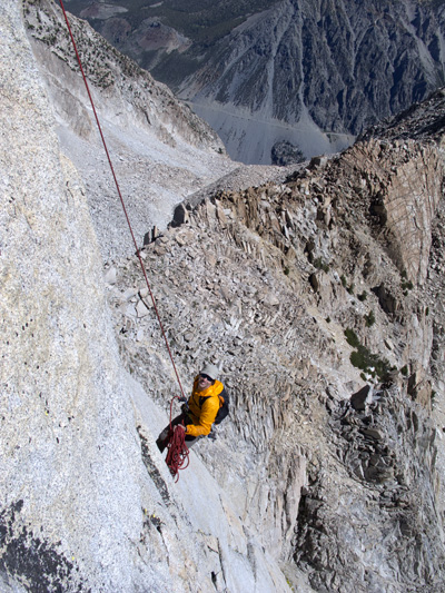 So for our wedding anniversary this year, Betsy had the idea of climbing with Peter Croft, if that was at all possible, so that we could climb something in the backcountry that we otherwise would not have been able to do by ourselves.  It turns out Peter does guide through Sierra Mountain Guides of Bishop so Betsy got on the phone to arrange a climb.  At first we wanted to do Charlotte Dome, a 3 day class 5.8/5.9 (moderate) climb, but three days was too long.  Betsy and the guide service settled on the Third Pillar of Mt.  Dana.  As Betsy explained to me, “It is a super classic backcountry climb so good that some people in Europe come to the Sierra to do just that climb.  And its rated 5.10b.”