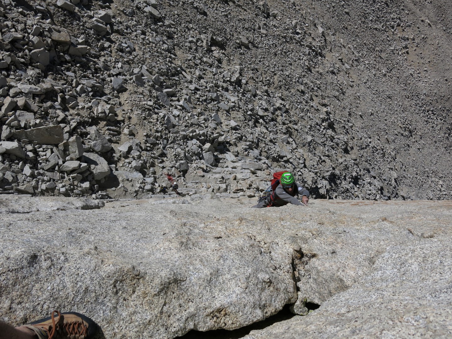 It was a good time with great people and fantastic rock (often the granite on the highest peaks is not the best quality, but Fishhook Arete is superb granite). The only frustrating part, and this happened to both Betsy and I, is that we both almost completely blew our remaining arm strength on a lie back crack at about 13,999 feet. Give or take a foot. However once we got to the belay Peter said, “What lie-back crack?. That was a hand jam and it wasn’t very difficult”. Ug. So apparently we need to practice identifying and doing hand jams.