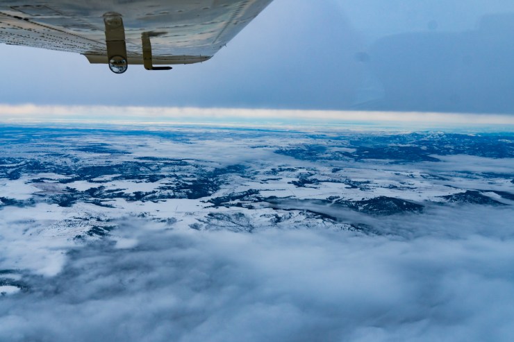 The trip up to BC was the first challenge. The forecast called for clear weather all the way up, and it wasn’t. We gradually got into misty weather. I climbed to 17,500 feet to get above it but couldn’t, so I returned to about 10,000 feet to fly under. The next three hours were spent dodging snow flurries and going from small town to small town, prepared to land if needed. The visibility was around 20-30 miles which usually is pretty comfortable but in the middle of nowhere in eastern Oregon among the mountains it definitely wasn’t comfortable. However I always had an “out”, of either an airport within reach or a clear shot to the east.