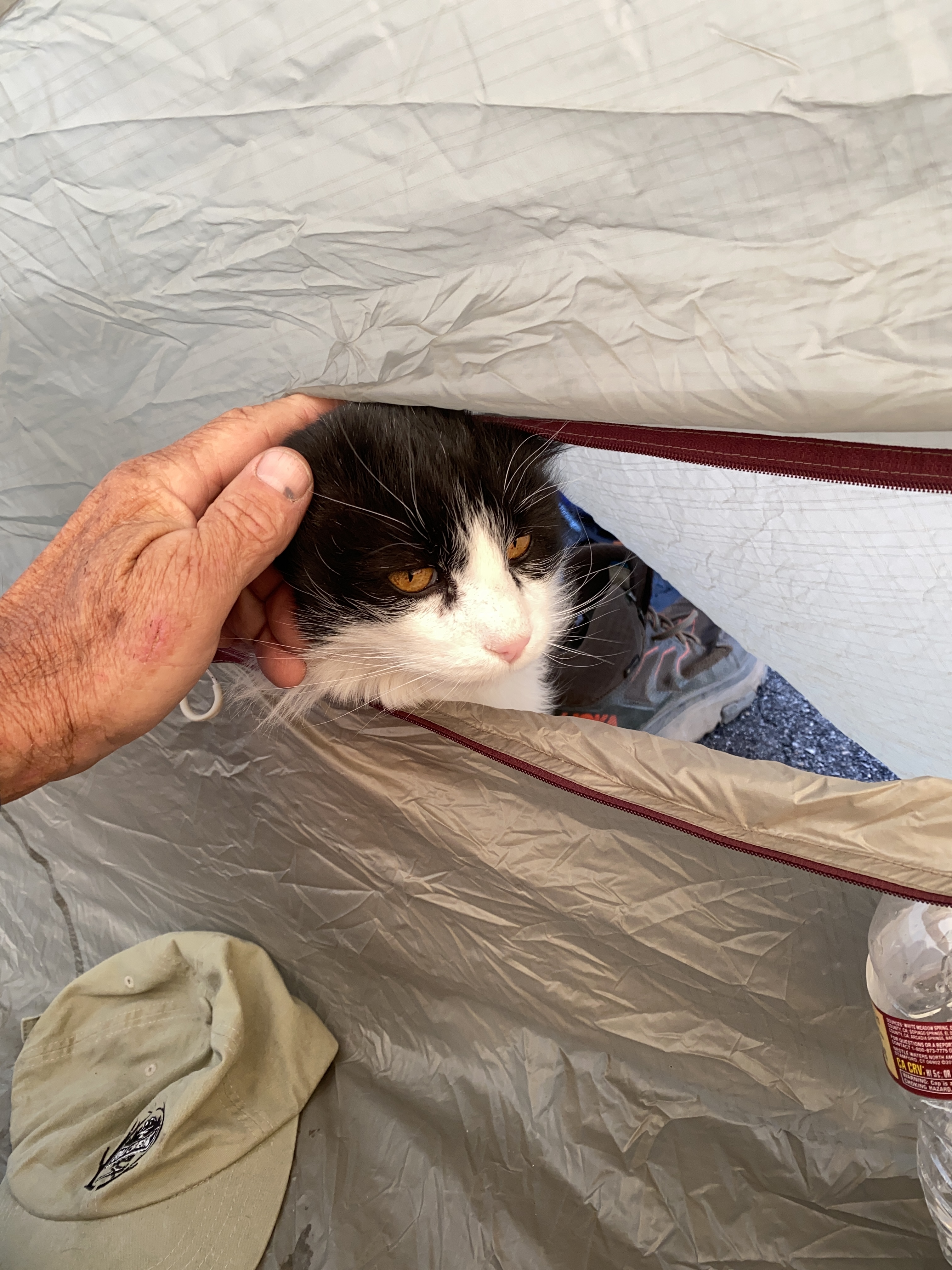 I had planned on eating at a diner in Goldfield but I’ve learned to be prepared so I dug into my cooler and had a bagged salad and a freeze dried chicken teriyaki dinner and even a cold beer. It was quite nice and I even had a visitor: an animal tried and even successfully got into my tent that night and again in the morning. There was no stopping it.