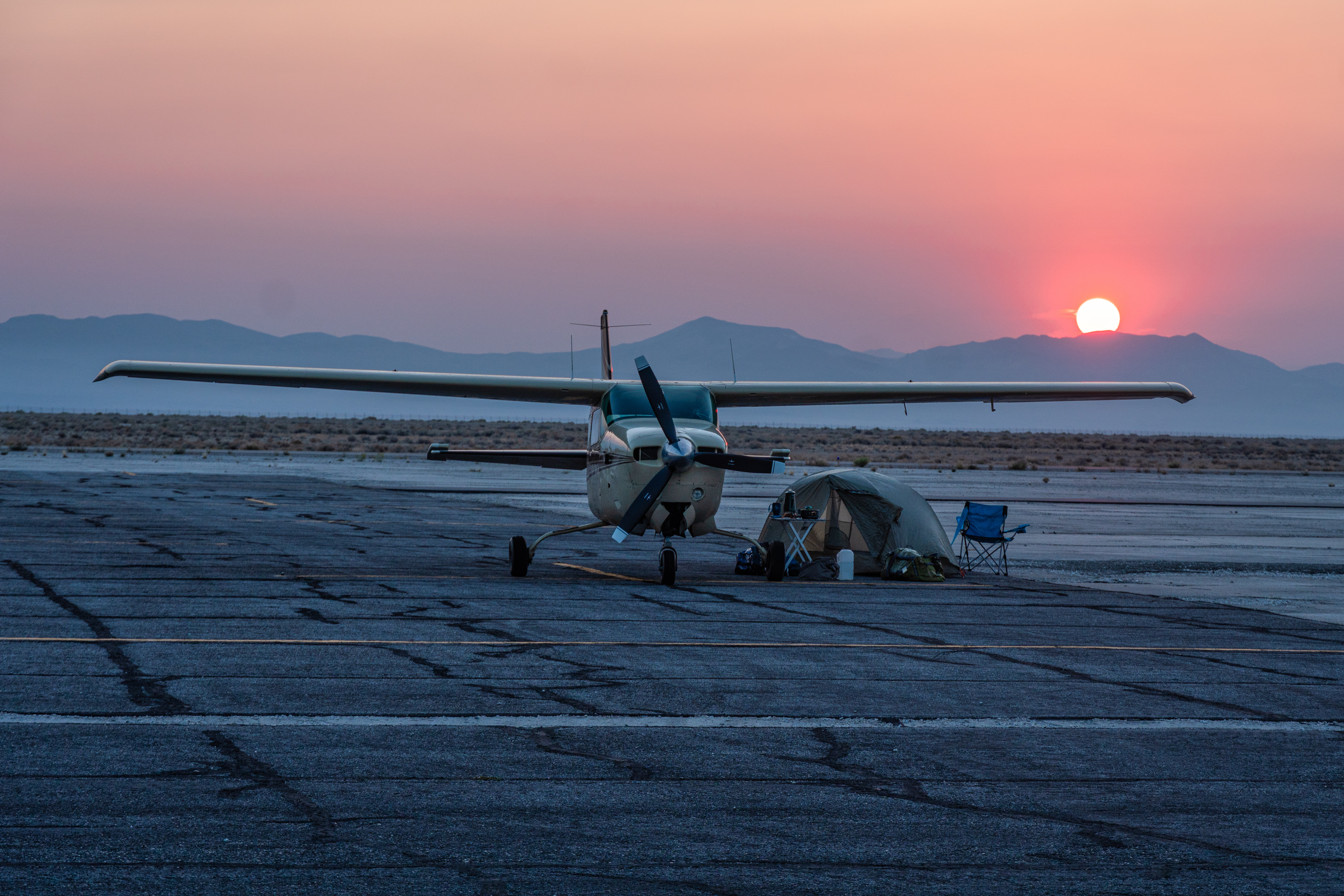 So I turned around and flew further into Nevada to Tonopah. It is an enormous airfield because it was a training base during WWII, but it is empty and lonely now (and 8 miles from town) with only a handful of planes based there. I pulled in and pulled out my tent on the large ramp.