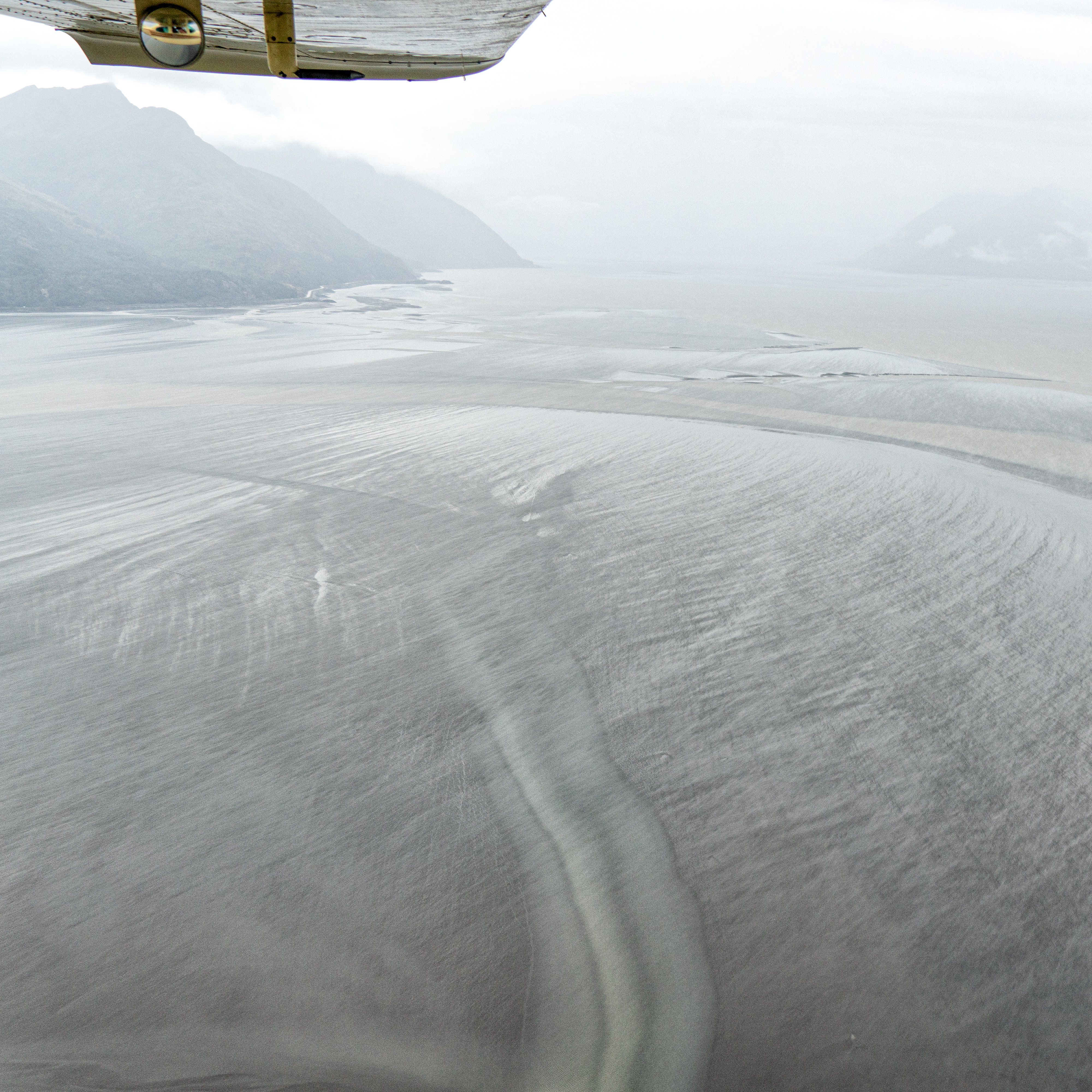 I hatched a plan. I would fly the plane (low once again in the rain) from Wasilla down past Anchorage, across the low-tide mud of Turnagain Arm and down across lowlands to Soldotna. We’d leave the plane there, ready, and take the van to some rivers for rafting. Should a weather window open, we could dash back to Soldotna and fly across the bay to Katmai and Lake Clark National Parks.