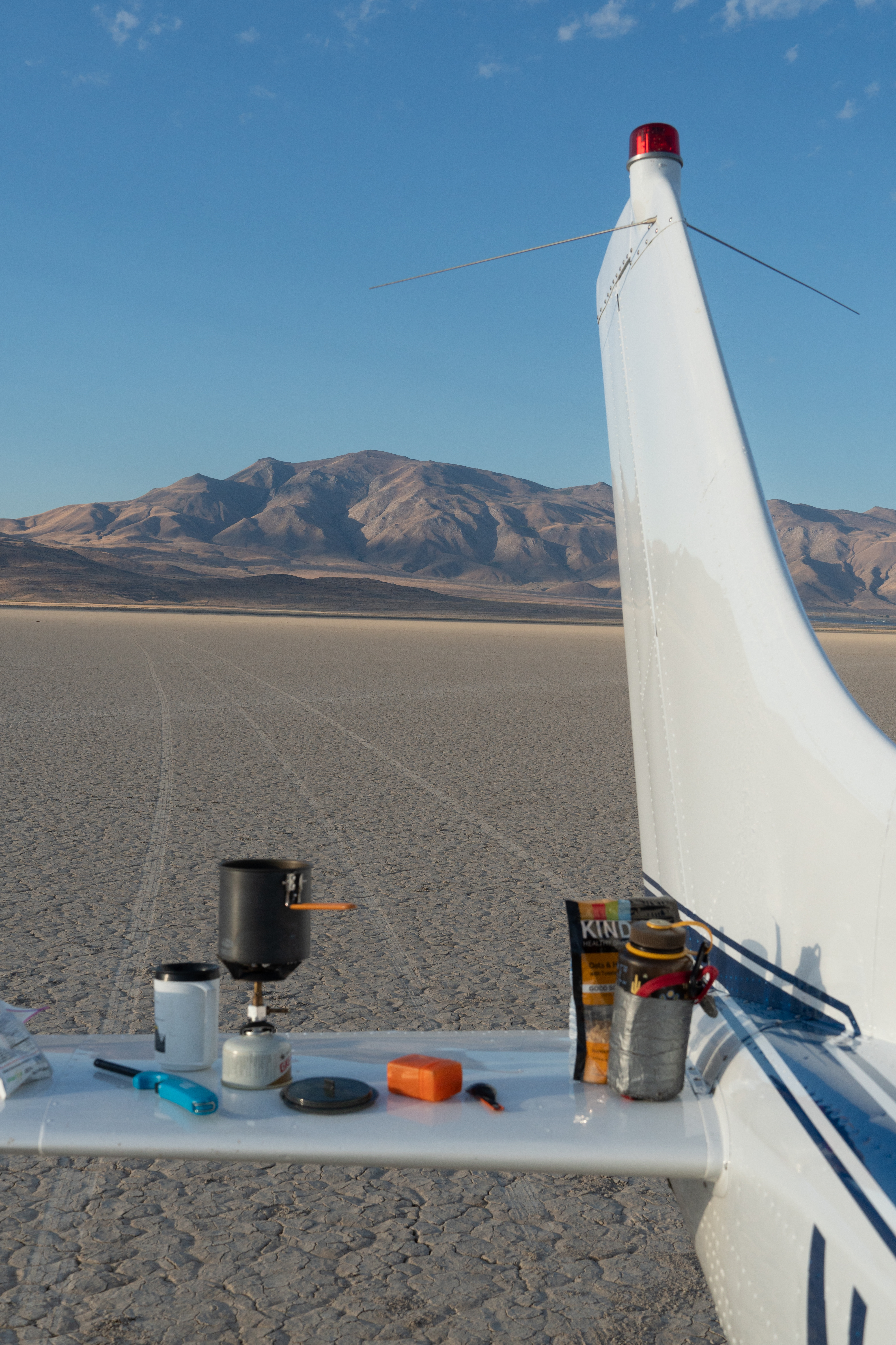 A sunset landing on the Dead Cow playa was cool. The interior of the plane is in very nice condition thanks to Craig, so I carefully took off my shoes when I got back in the plane the next day. That fine playa dust can really be hard to get rid of.