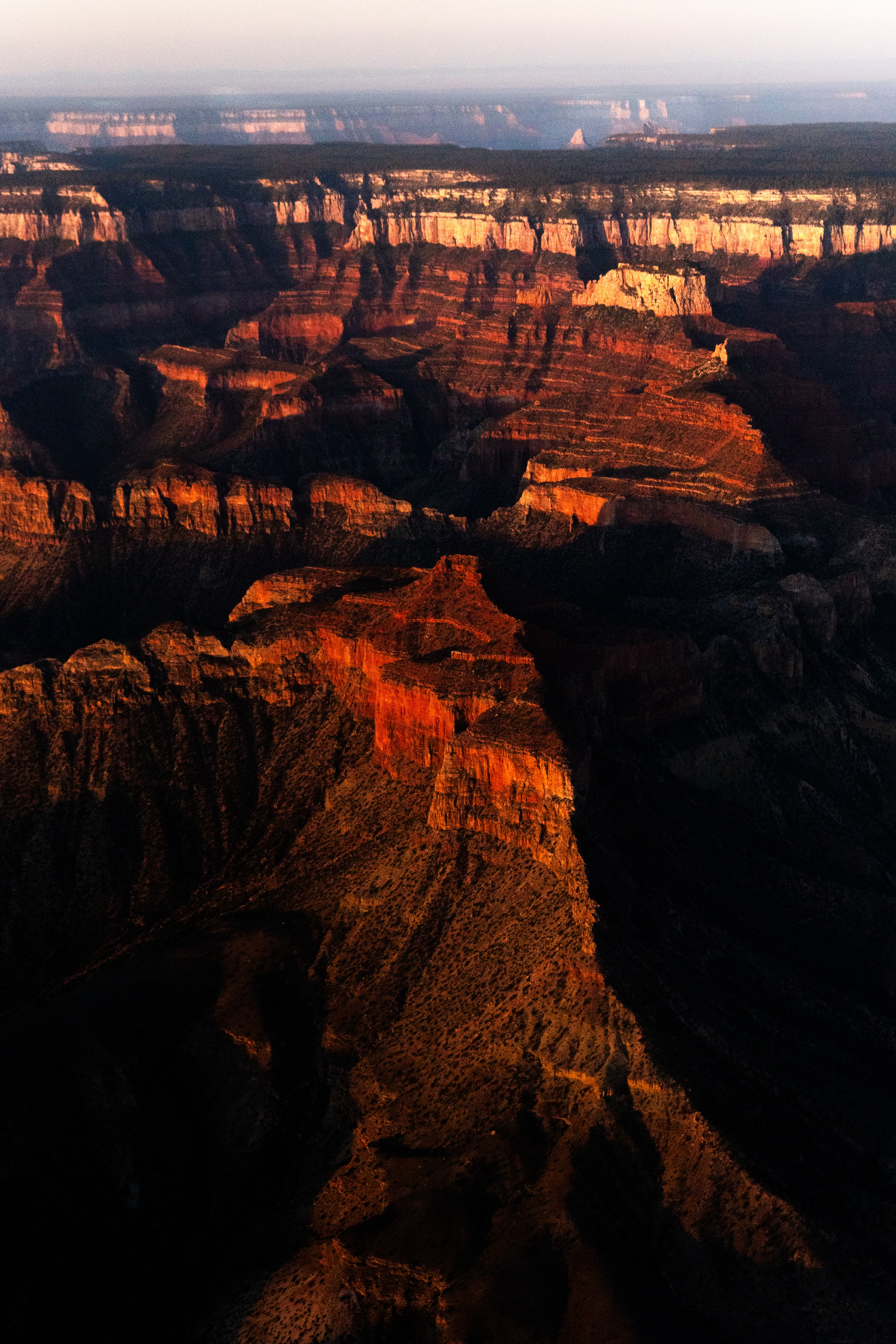The rising sun, when you think about it, will touch the plane first (since it is thousands of feet above the ground) before it touches the ground. I hadn’t thought about it. So at first it was disappointing that the sun was clearly up but it wasn’t lighting up the rim of the canyon like I expected.