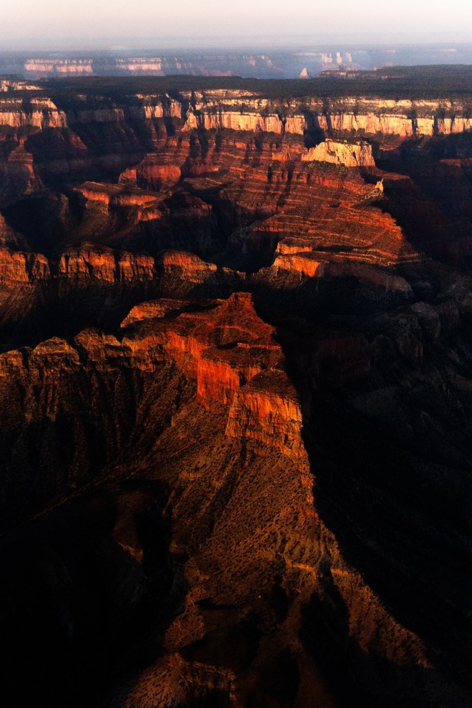 I timed it so we would arrive over the main part of the Grand Canyon in time to see the whole show – the “blue hour” before sun up, sunrise and then the gradual and stunning transformation of the Grand Canyon as the sun lit up the walls.