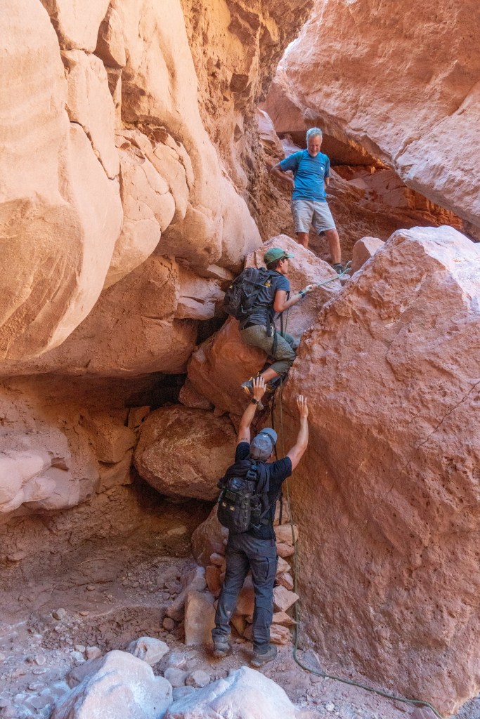 The great thing about the airstrip (in my opinion) is that the runoff ditch midfield turns into a bigger ditch, then a small canyon and finally tumbles into the massive Soap Creek canyon. It’s a tough and long scramble but you can go all the way down (4 miles) to the Colorado River. Past hard-to-find pictographs. There is one 10 foot drop that typically has a knotted rope hanging there for assistance. It looks easier than it is.
