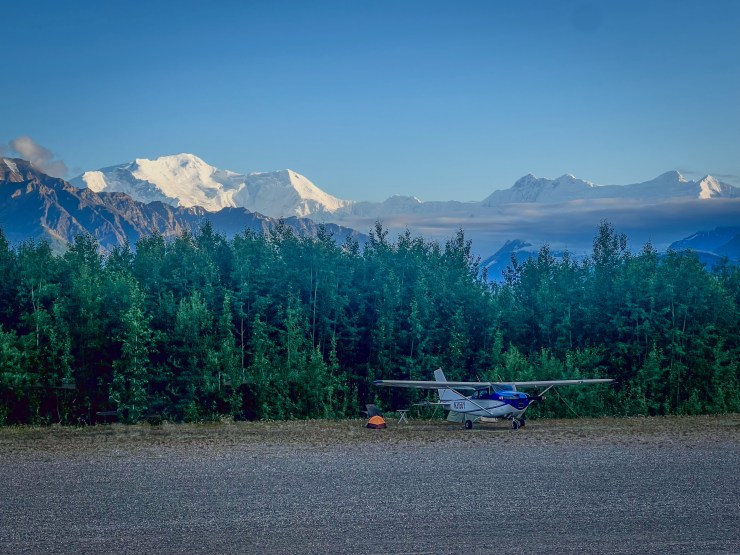 The runway is gravel but is relatively smooth and you can camp under your wing. If there is an airport in Canada or Alaska that needs a flight service person for traffic advisories this is it. There isn’t one. There are quite a few tour planes plus private traffic in and out so be alert. Runway one appears to be the calm wind runway.