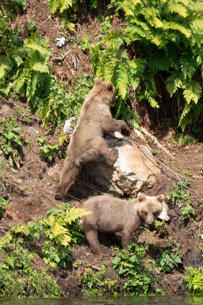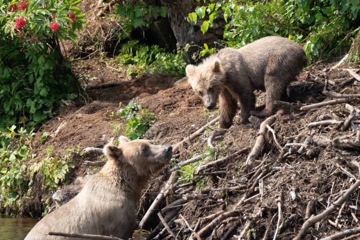 There are several ways to go bear viewing in central Alaska, many of which involve flying over Cook Inlet to the Katmai area. You can spend a lot of time and money to go to the famous Brooks Falls area (where they stand in the rapids to catch fish), but there are numerous other areas that have tours, often a combination of planes and boats that leave from Anchorage, Kenai/Soldotna or Homer.