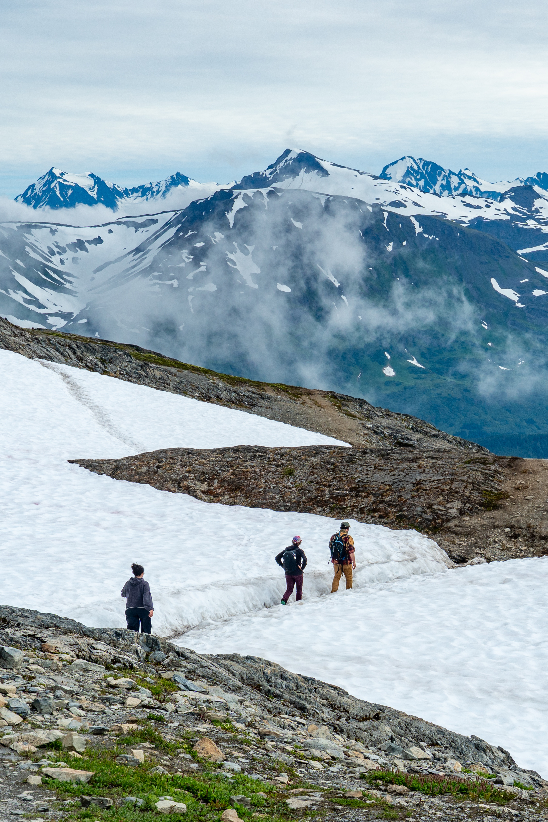 From the top you can peer out over the Harding Icefield, an incredible sight! We’ve seen tour planes (a Cessna 206 on skis) land on the snow field. They land, get out and walk around for a few minutes, then get back into the plane and head back down the glacier. We also saw a guy pulling a sled walking out across the snowfield. Wow, tough dude (or lady). It’s about 100 miles long and I think every day you see the same thing. Which isn’t very exciting.