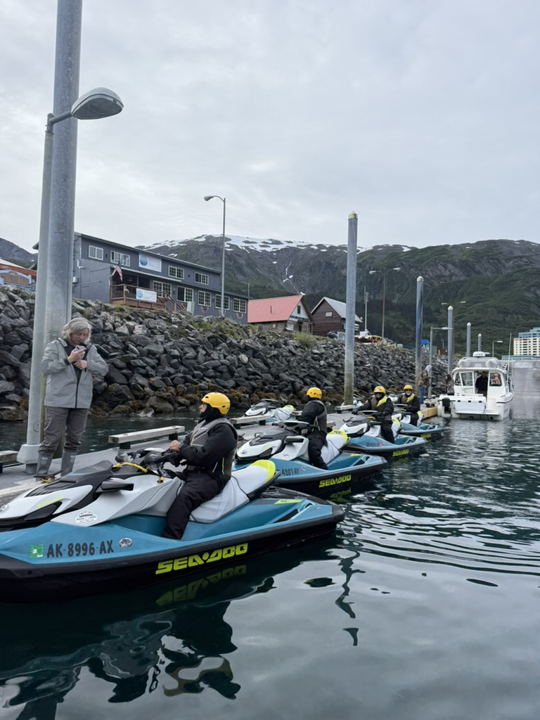 Typically, you’ll see us doing human-powered adventures, but what the heck, this was fun. This adventure involved jet-skiing at about 50 mph from Whittier Alaska up a fjord to view a glacier.