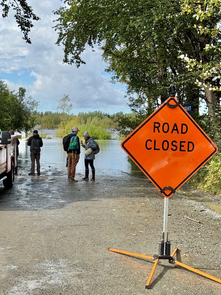 We faced a challenge, though. It had rained for three days and the river was at flood stage. The water was in the streets of Talkeetna. Entire trees were floating downstream. I’m pretty sure our little packrafts wouldn’t withstand a battle with a floating spruce tree.